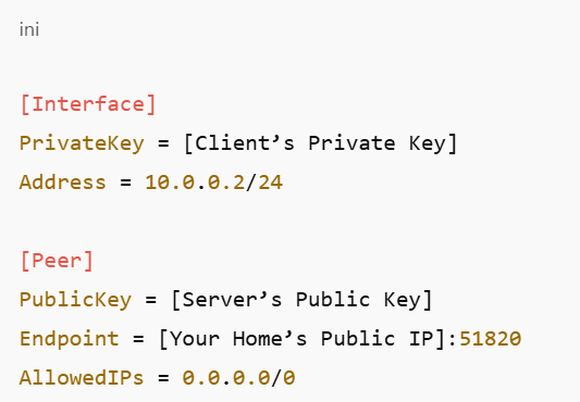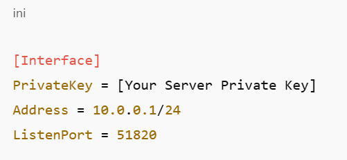 As it is well known, this file just proclaims, “I am here to accept connections on port 51820.” This port should also be forwarded with your router so any other outside traffic can gain access to your lab.