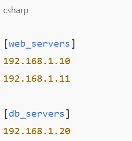 This file defines the inventory file to enable Ansible to know the machines to manage. It might look like this: